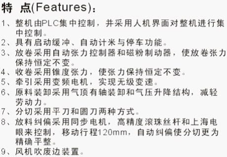分切機產品特點: